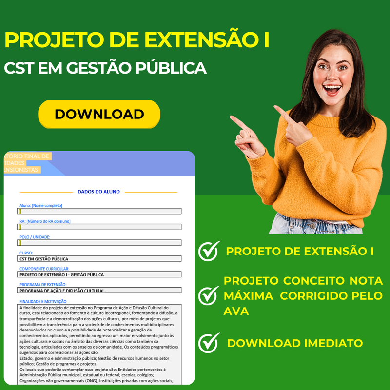 Aluno e Aluna, após realizar suas atividades de extensão, é necessário que você o formalize, enviando esse Relatório Final para ser avaliado junto ao seu Ambiente Virtual (AVA) e também para você poder comprovar sua atuação. Para o preenchimento, busque as anotações junto ao TEMPLATE PCDA para auxiliar na apresentação das atividades desenvolvidas. Todos os campos são de preenchimento obrigatório! |