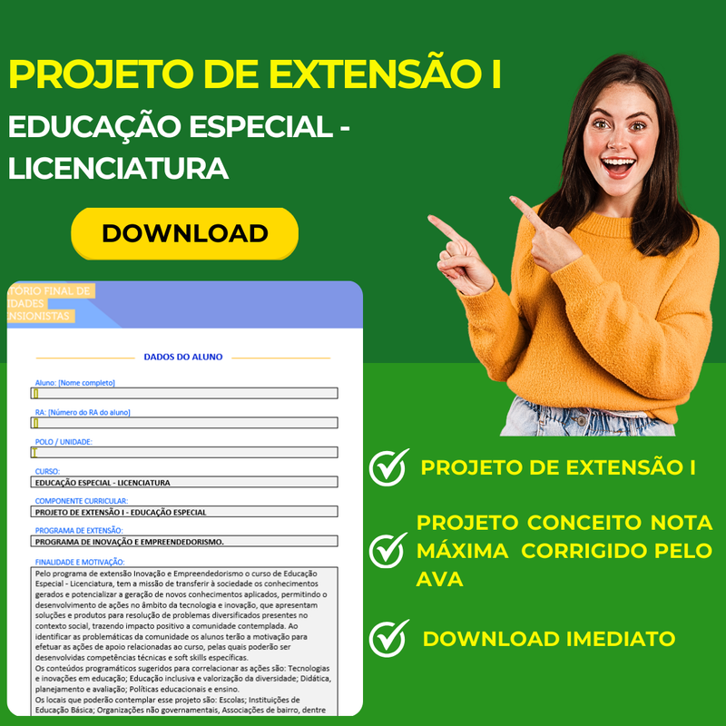 Pelo programa de extensão Inovação e Empreendedorismo o curso de Educação Especial - Licenciatura, tem a missão de transferir à sociedade os conhecimentos gerados e potencializar a geração de novos conhecimentos aplicados, permitindo o desenvolvimento de ações no âmbito da tecnologia e inovação, que apresentam soluções e produtos para resolução de problemas diversificados presentes no contexto social, trazendo impacto positivo a comunidade contemplada. Ao identificar as problemáticas da comunidade os alunos terão a motivação para efetuar as ações de apoio relacionadas ao curso, pelas quais poderão ser desenvolvidas competências técnicas e soft skills específicas. Os conteúdos programáticos sugeridos para correlacionar as ações são: Tecnologias e inovações em educação; Educação inclusiva e valorização da diversidade; Didática, planejamento e avaliação; Políticas educacionais e ensino. Os locais que poderão contemplar esse projeto são: Escolas; Instituições de Educação Básica; Organizações não governamentais, Associações de bairro, dentre outros. |